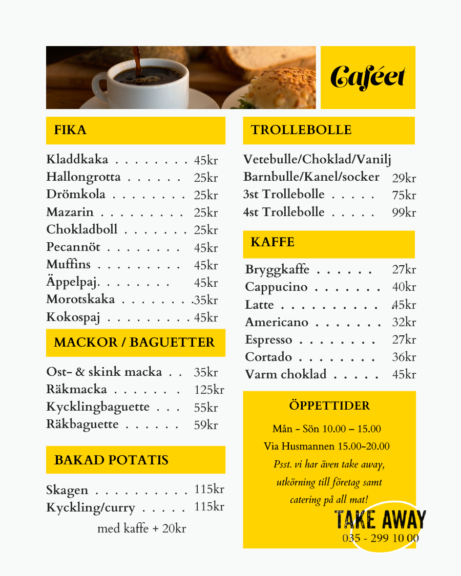 På vårt café hittar ni ett brett utbud av fika & goda drycker med bekväma och mysiga sittplatser.