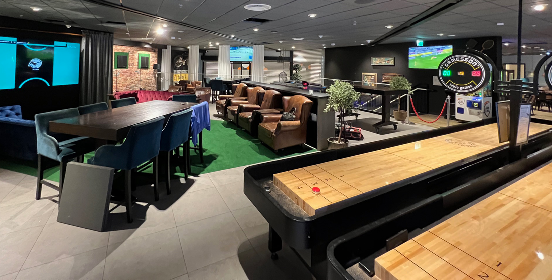 Biljard | Shuffleboard | Dart | Airhockey | Basket | Flipper | Boxboll | Crazy Light Minibowling | Femkamp | Karaoke | TV-skärmar med sportsändningar